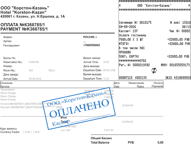 Купить гостиничные чеки, изготовленные по образцу в Казани